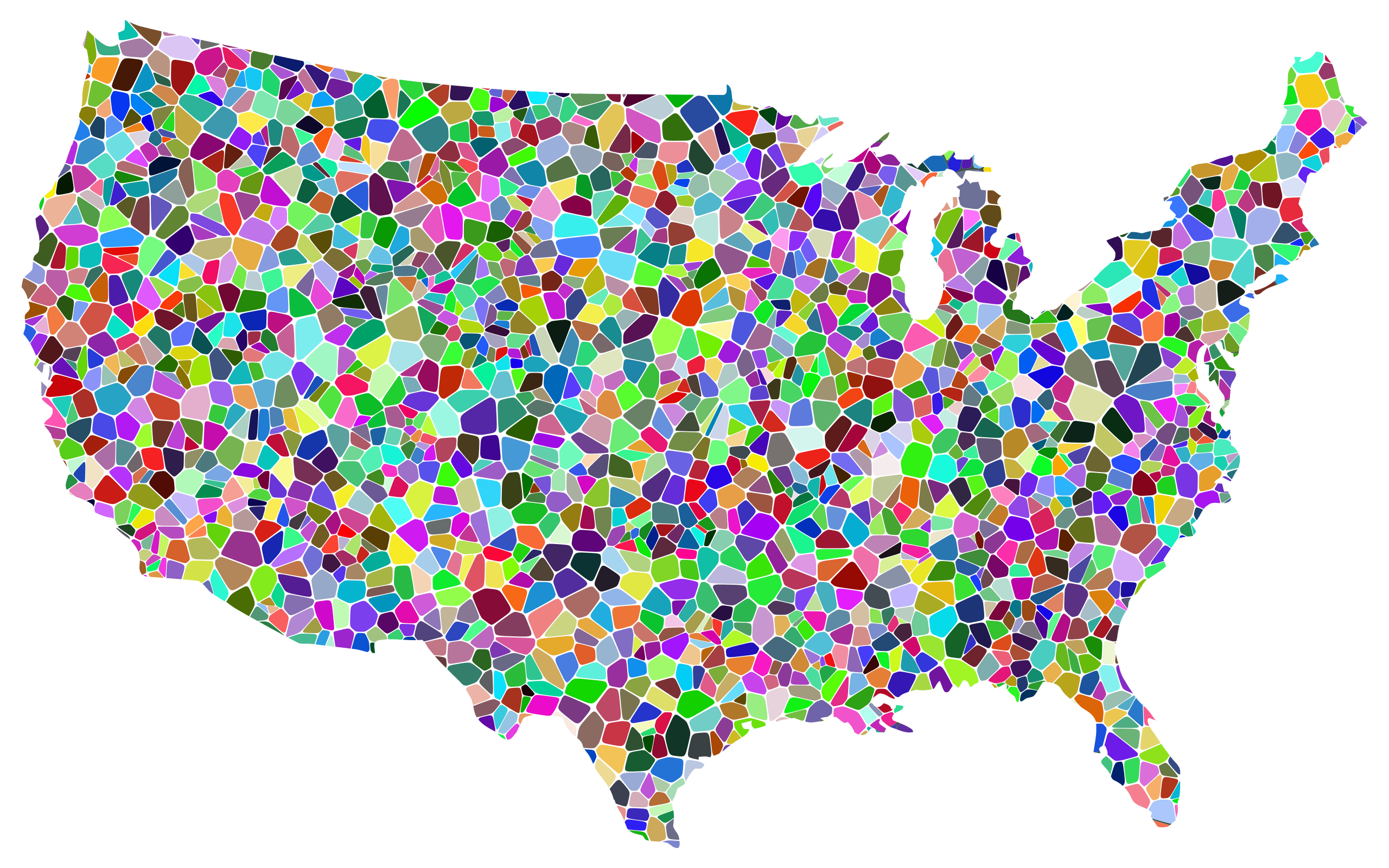 Tags: abstract, america, art, border, chromatic, colorful, country, geography, geometric, map, nation, prismatic, rainbow, tiled, tile, united states, usa, voronoi, united state