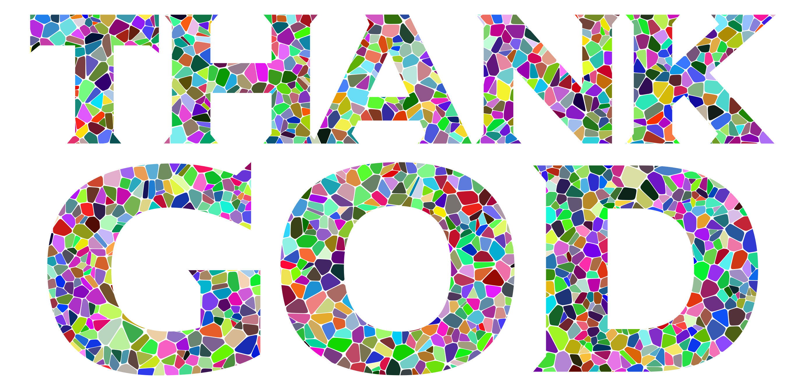 Tags: abstract, art, chromatic, colorful, creator, divine, geometric, god, gratitude, holy, prismatic, rainbow, religion, text, thanks, tiled, tile, type, typography, voronoi, word, thank god