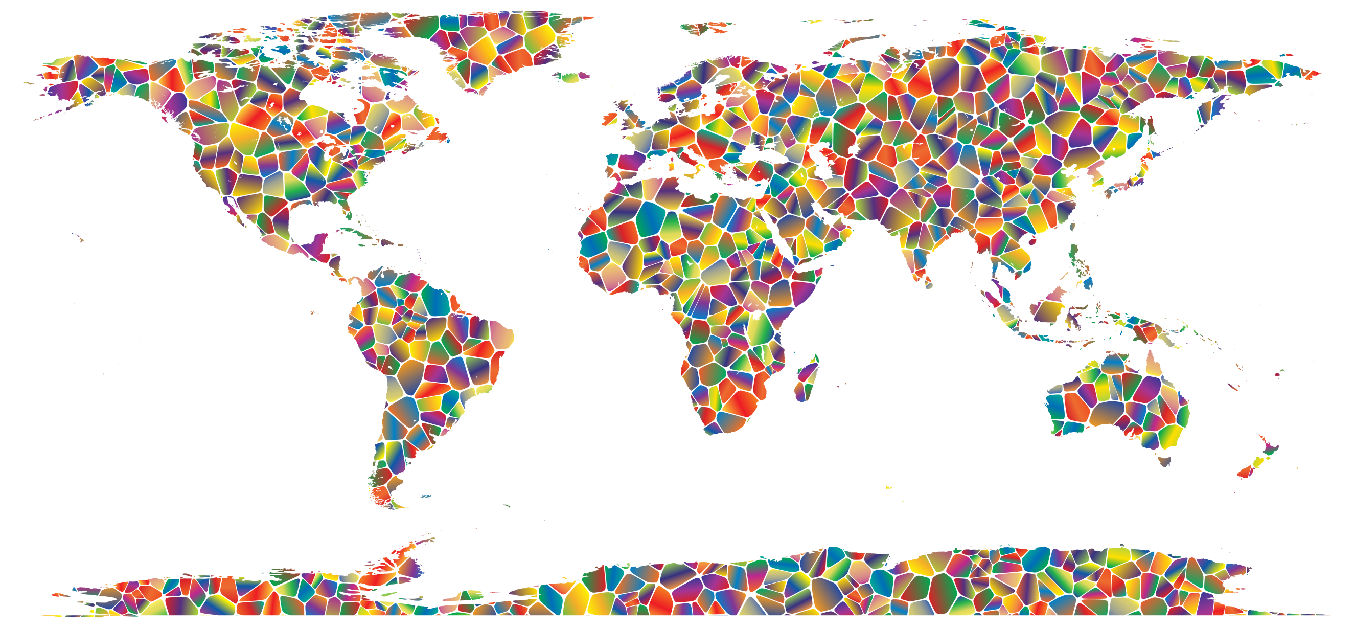 Tags: abstract, art, cartography, chromatic, colorful, continent, earth, geography, geometric, globe, map, planet, prismatic, rainbow, tiled, tile, voronoi, world