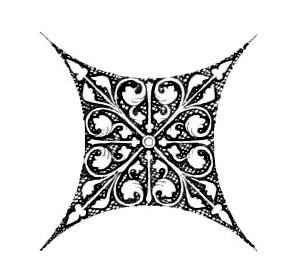 This features a decorative design with an ornate pattern, likely from an old book. The intricate design is composed of interconnected circles and swirls, creating a visually appealing piece of artwork. The overall composition of the design showcases a blend of traditional and modern elements, making it both timeless and captivating. This type of ornament could be used as a decorative accent in various settings or even as an inspiration for artists looking to create unique designs.