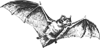 This features a black and white drawing of a bat flying through the air. The bat is captured in mid-flight, with its wings spread wide as it soars above the ground. The drawing showcases the intricate details of the bat's wings and body, giving an artistic representation of this fascinating creature.