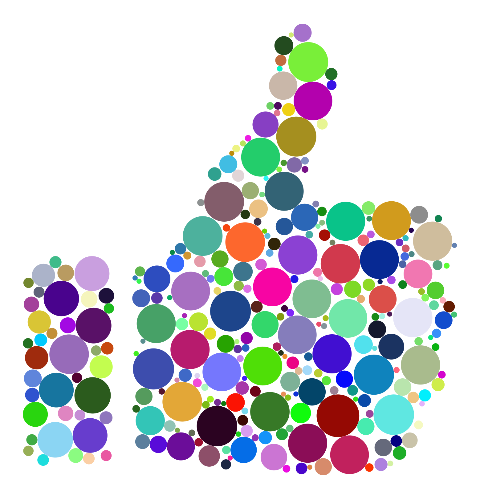 This features a large, colorful thumbs up sign made up of various colored circles. These circles are scattered all over the sign, creating a vibrant and lively appearance. The colors used in the design include shades of green, red, blue, yellow, purple, orange, and pink. The combination of these different colors creates an eye-catching and cheerful visual effect that is sure to grab attention.