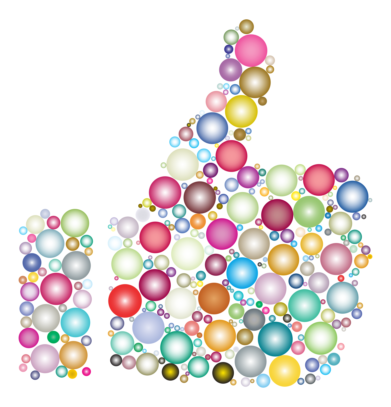 This features a large, colorful circle with a thumbs up sign in the center. Surrounding this central symbol are numerous small circles of various colors, creating an eye-catching and vibrant display. The combination of the thumbs up sign and the multitude of colored circles gives the impression of a positive and lively atmosphere. This artistic arrangement could be used as a decorative element or to convey a message of encouragement and support.