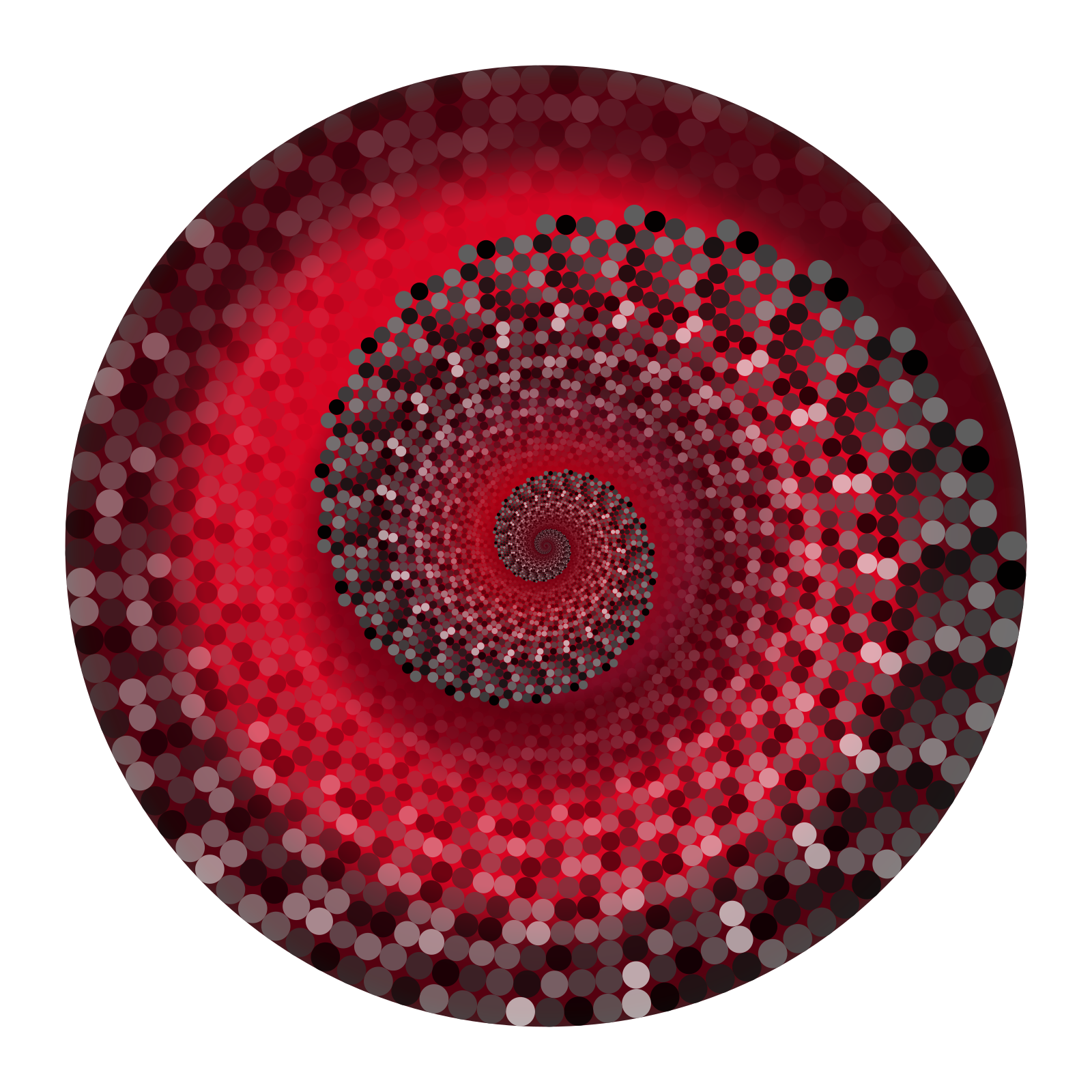 This features a large, red and black swirling circle with a vortex in the middle. The circle is made up of many small circles that are scattered throughout the entire image. These smaller circles vary in size and position, creating an intricate pattern on the surface of the larger circle. The combination of these smaller circles creates a visually striking and captivating design that draws attention to the center of the swirling vortex.
