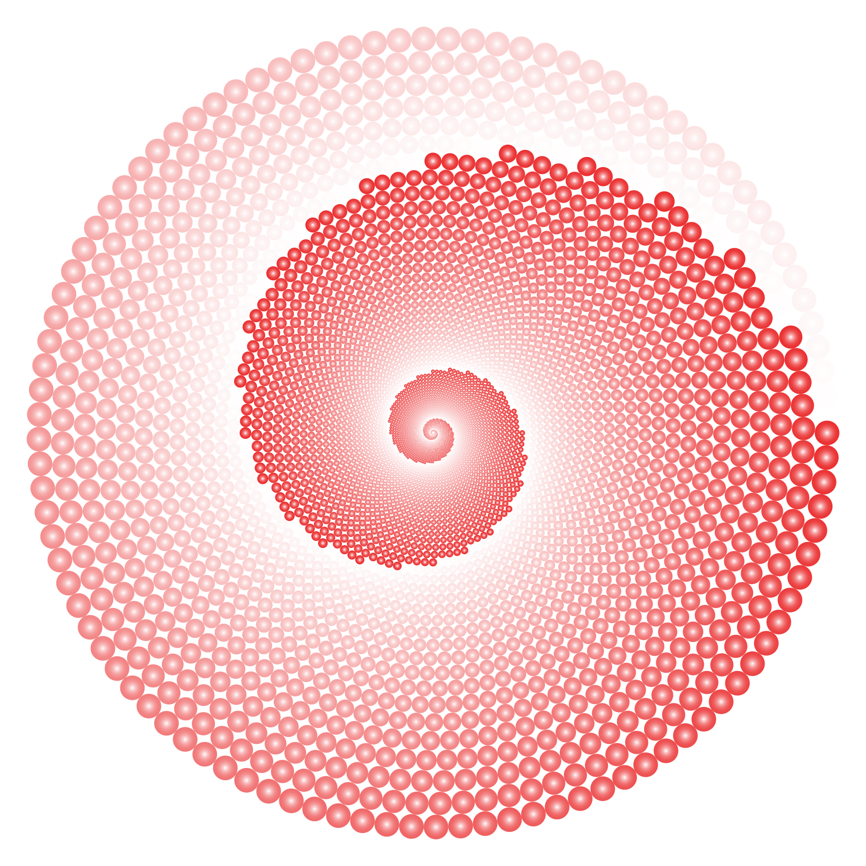 This features a large, red swirling vortex made up of tiny circles. These circles are arranged in a circular pattern, creating an intricate and visually appealing design. The color of the circles is predominantly red, giving the entire composition a vibrant and lively appearance. This artistic representation of a spiral can be appreciated for its creativity and attention to detail, as it showcases the beauty found in simple geometric shapes.