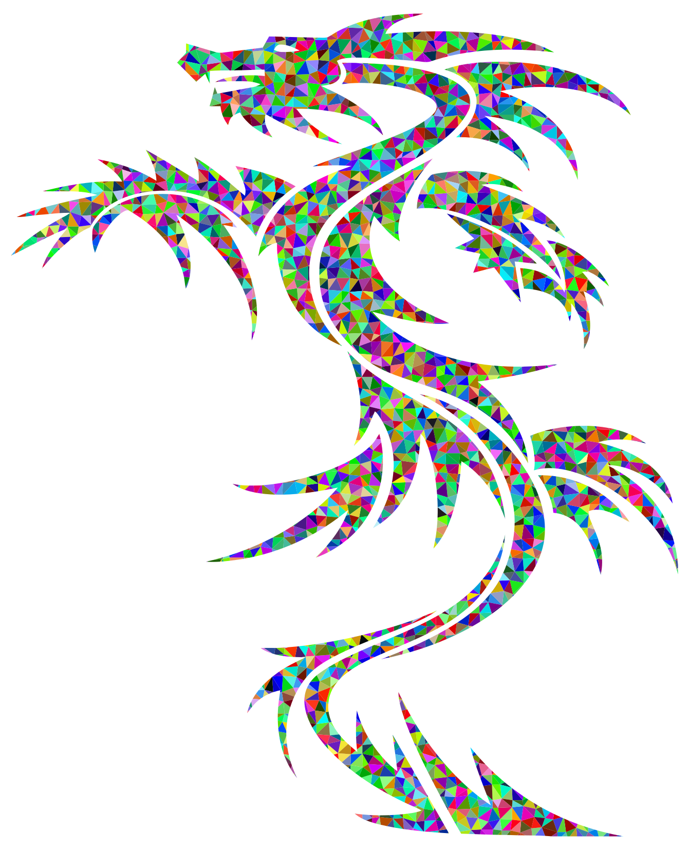 This features a vibrant, colorful dragon design that is both intricate and eye-catching. The dragon's body is made up of multiple interconnected lines, creating an artistic and dynamic appearance. The colors used in the design are varied and bold, making it stand out against any background. This unique and visually appealing image would make a great addition to any collection or display.