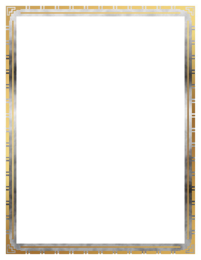 This features a golden border with an intricate design. The border is made out of interrupted lines, giving it a shiny effect. In the center of this frame, there is a blank space where a picture or drawing could be placed. This artistic piece has a unique and elegant appearance, making it suitable for various settings such as home decoration or artwork display.