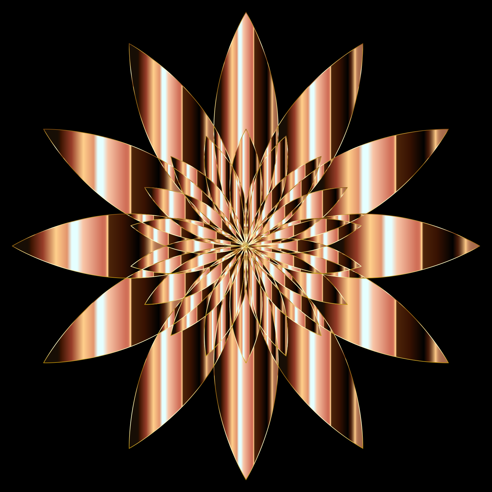 This features a beautifully crafted flower made of bronze. It is an intricate design with twelve petals, giving it the appearance of a sunflower. The background is black, which allows the flower to stand out prominently in the scene. This artistic piece showcases the artist's skill and attention to detail, making it an eye-catching decoration or centerpiece for any space.