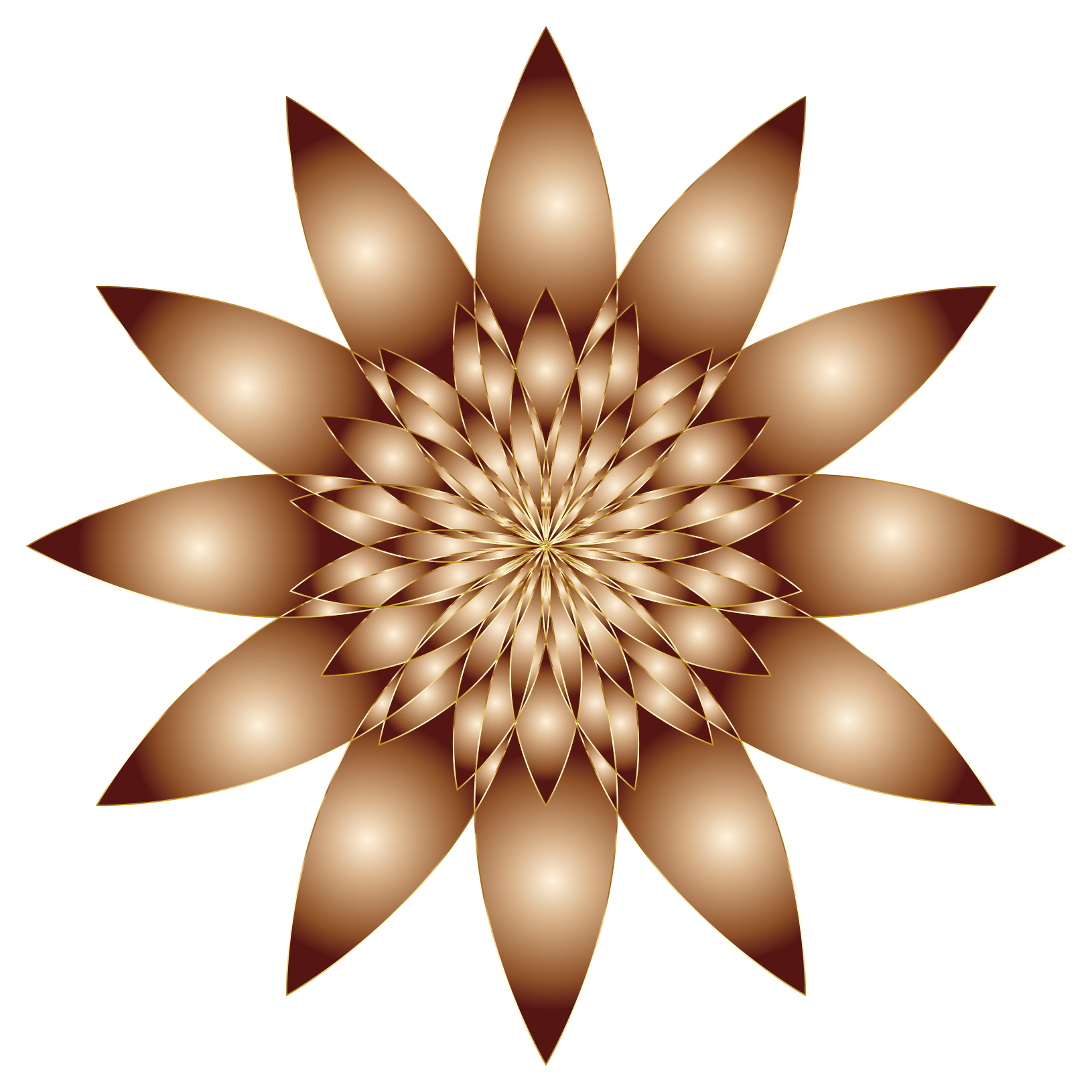 This features a beautiful, intricate flower design with twelve petals. Each petal is shaped like an eye and has dark points at the center. The flower's color is a warm brown tone, giving it a rich and elegant appearance. The close-up view of this flower allows for a detailed examination of its unique features, making it an interesting focal point in the image.