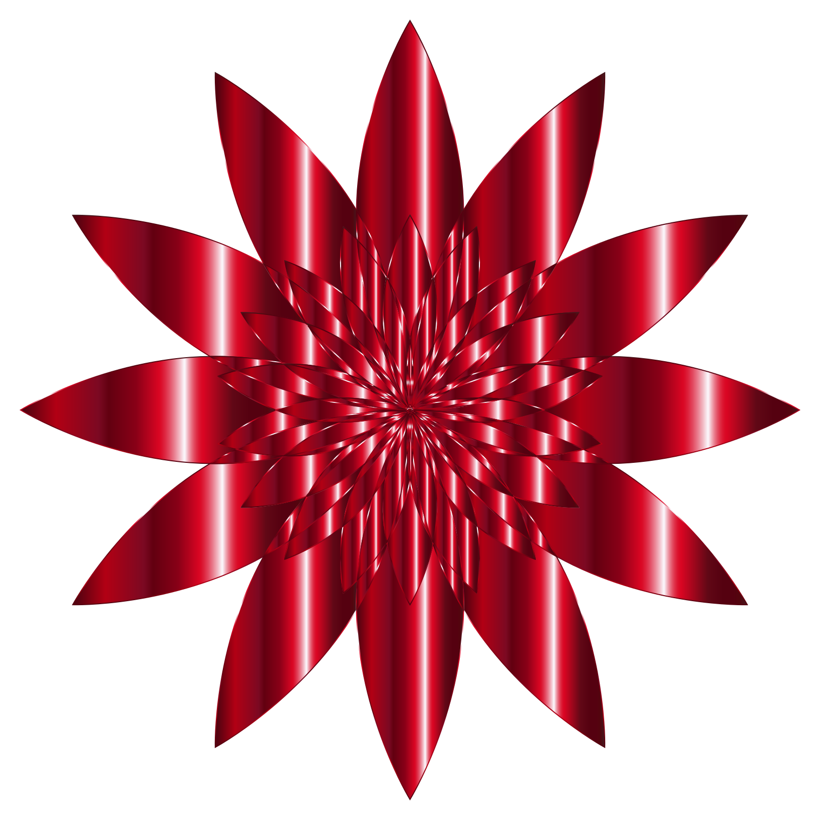 This features a large, red flower with twelve petals. Each petal is pointy and arranged in a circular pattern around the center of the flower. The flower has a glossy appearance, giving it an eye-catching look. The vibrant color of the flower makes it stand out against its surroundings. This image could be used as a decorative element or to represent a specific theme or concept related to flowers and their beauty.