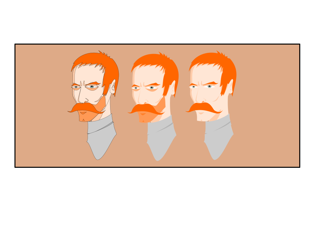 This features a man with orange hair and a mustache, who is seen three times in the picture. Each time, part of his face is removed to showcase different angles or perspectives. This creates an interesting visual effect that highlights the unique characteristics of the man's appearance. The overall composition of the image emphasizes the distinctive features of the subject and invites viewers to appreciate the intricacies of human facial structures.