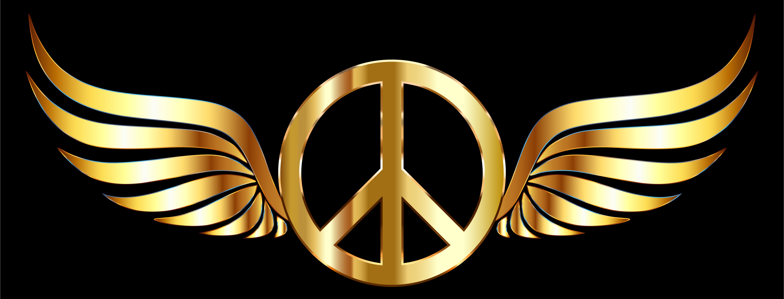 This features a peace sign, which is an iconic symbol of harmony and unity. It is adorned with gold wings on either side, giving it a sense of elegance and sophistication. The peace sign itself is made up of two overlapping circles, one larger than the other, creating a visually appealing design. This unique combination of elements creates an eye-catching and memorable image that can be used in various contexts to convey a message of peace and positivity.