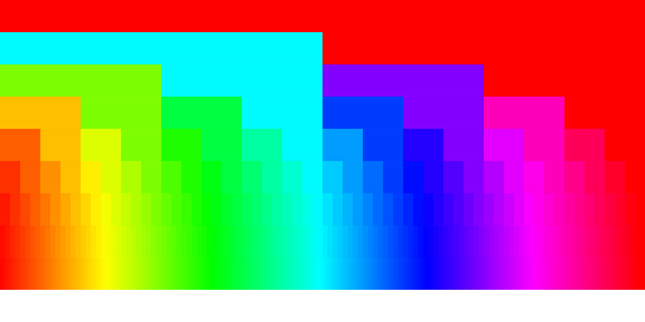 This features a colorful display of rainbow colors, with each color represented by a different shade. There are six distinct sections in the image, each containing a unique combination of colors. These sections are arranged vertically and horizontally throughout the entire frame, creating an eye-catching visual effect. The vibrant colors and patterns make this display an attractive focal point for anyone viewing it.