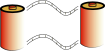 This features a roll of film with three different colored strips on it. The first strip is red, the second one is orange, and the third strip is yellow. These colors are arranged in a zigzag pattern across the entire length of the film. The roll appears to be a piece of art or an interesting design element rather than a functional item for photography.