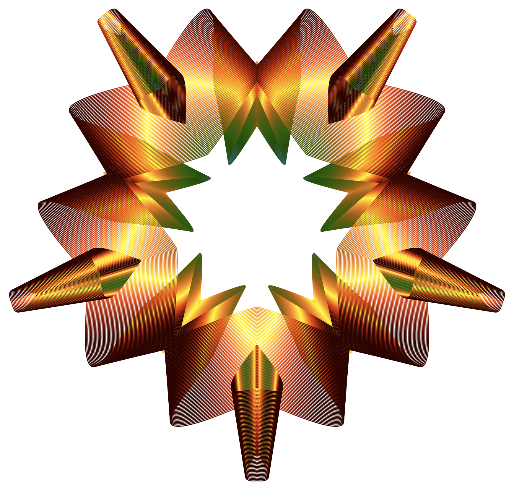 This features a large, colorful star with five distinct edges. It has an abstract shape and is hollow in the middle, giving it a unique appearance. The star is predominantly orange in color, making it stand out against its background. This artistic design could be used as a decorative piece or even as part of a larger pattern.