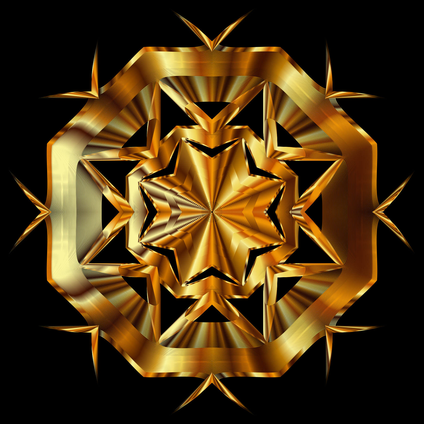 This features a golden star design with many points. The star has an intricate hexagonal shape, giving it a unique and eye-catching appearance. The gold color of the star adds to its elegance and sophistication. This artwork could be used for various purposes such as decorative elements in interior spaces or even as part of a fashionable accessory. The design's abstract nature allows it to blend well with different styles, making it versatile and appealing to a wide range of tastes.