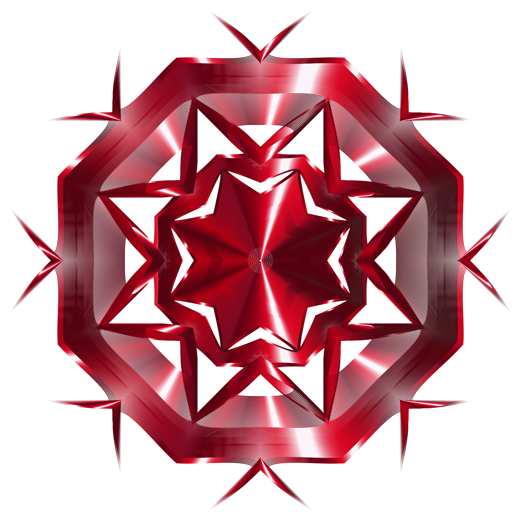 This features a large, red star with multiple points and angles. It is the central focus of the scene, taking up most of the space in the image. The star appears to be made from a combination of red and white colors, creating an interesting visual effect. The overall composition of the image gives off a sense of depth and complexity, making it an intriguing piece of art or design.