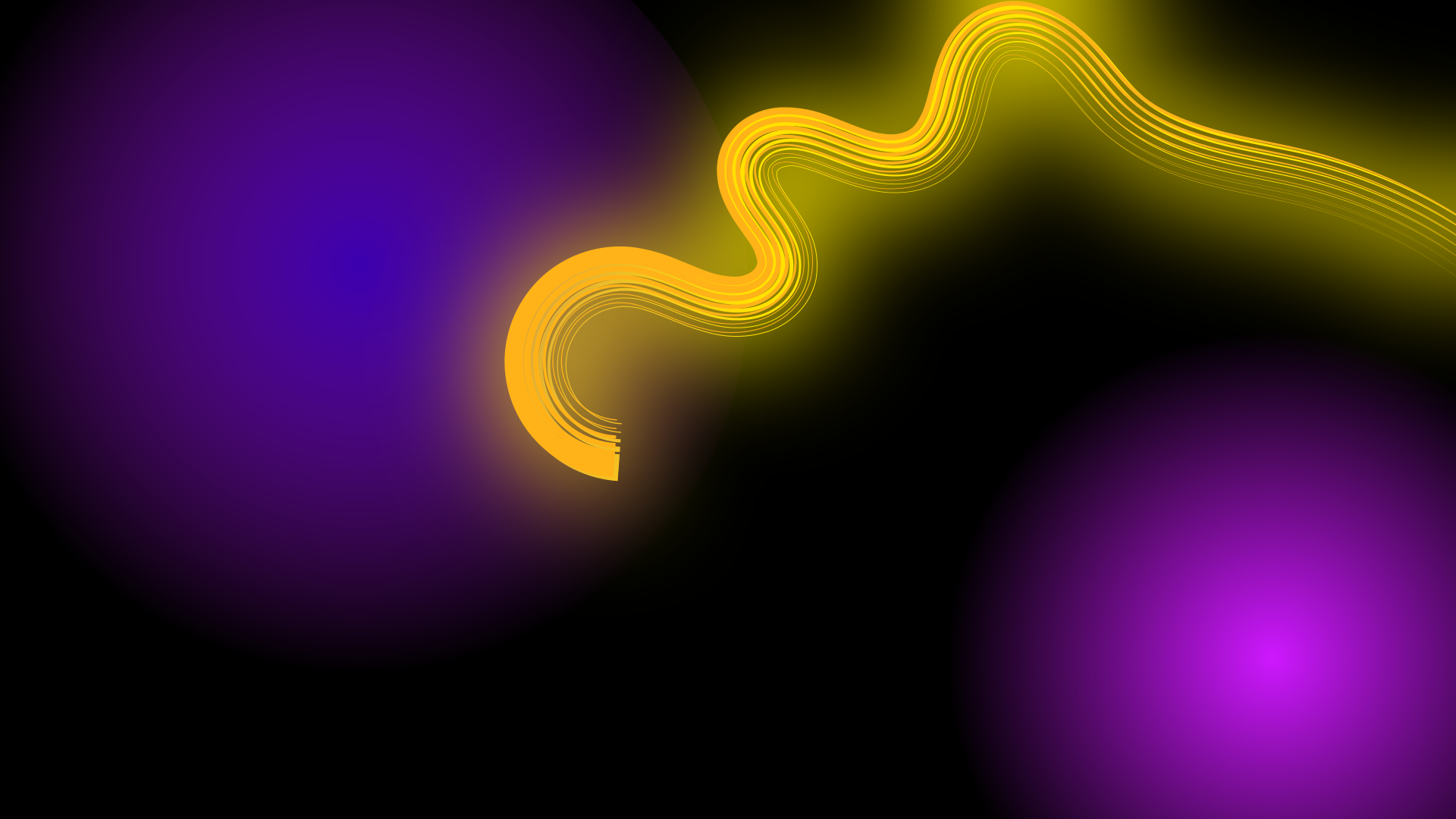 This features a black background with two circles, one purple and the other blue. In the middle of the picture, there is a yellow squiggly line that adds an interesting visual element to the composition. The colors in this illustration are muted, giving it a somewhat subdued appearance. Overall, the image creates a visually appealing contrast between the black background and the colored circles, with the yellow squiggly line serving as a focal point amidst the darkness.