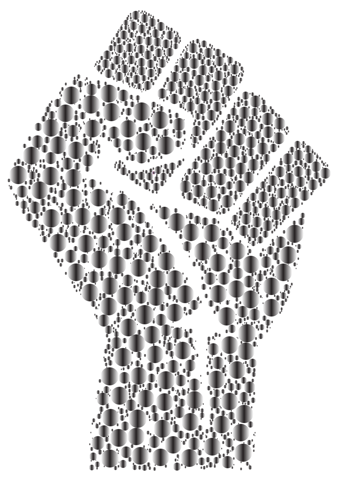 This features a large fist, made up of many smaller fists, all arranged in various positions. These smaller fists are scattered throughout the scene, with some located near the top left corner and others towards the bottom right side. The overall composition creates an impression of unity and strength, as each individual fist contributes to the larger collective representation. This image could be interpreted as a symbol of solidarity or a powerful visual metaphor for overcoming challenges and adversities.