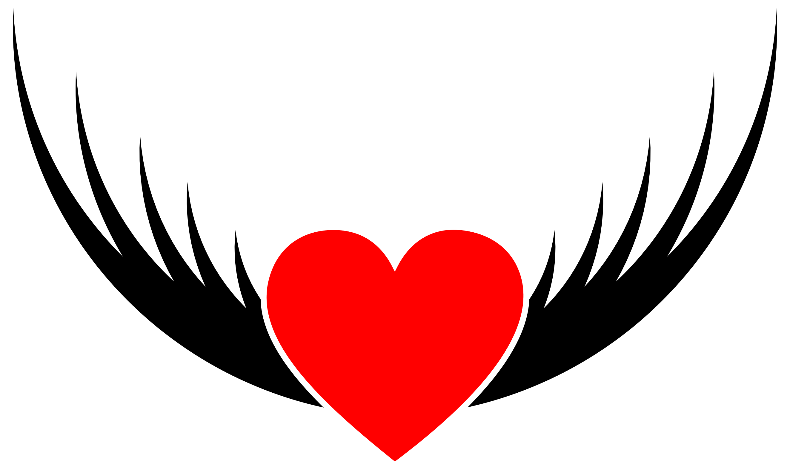 This features a heart with wings attached to it, creating an interesting and unique design. The heart is red in color, making it stand out against the background. The wings are black, adding contrast to the overall appearance of the image. This artistic representation of a heart with wings can be interpreted as a symbol of love or affection, showcasing the connection between the heart and the bird's wings.
