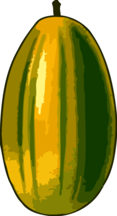 This features a large, round, and yellow fruit that is prominently displayed in the foreground. This fruit appears to be a type of melon or squash, with its vibrant color making it stand out against the background. The close-up view of the fruit emphasizes its size and shape, giving the viewer an appreciation for its natural beauty.