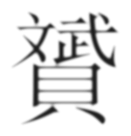 This features a large, ornate Chinese character written in black. This character is likely part of an Asian language and appears to be the main focus of the image. The character's intricate design suggests that it may hold cultural or historical significance.