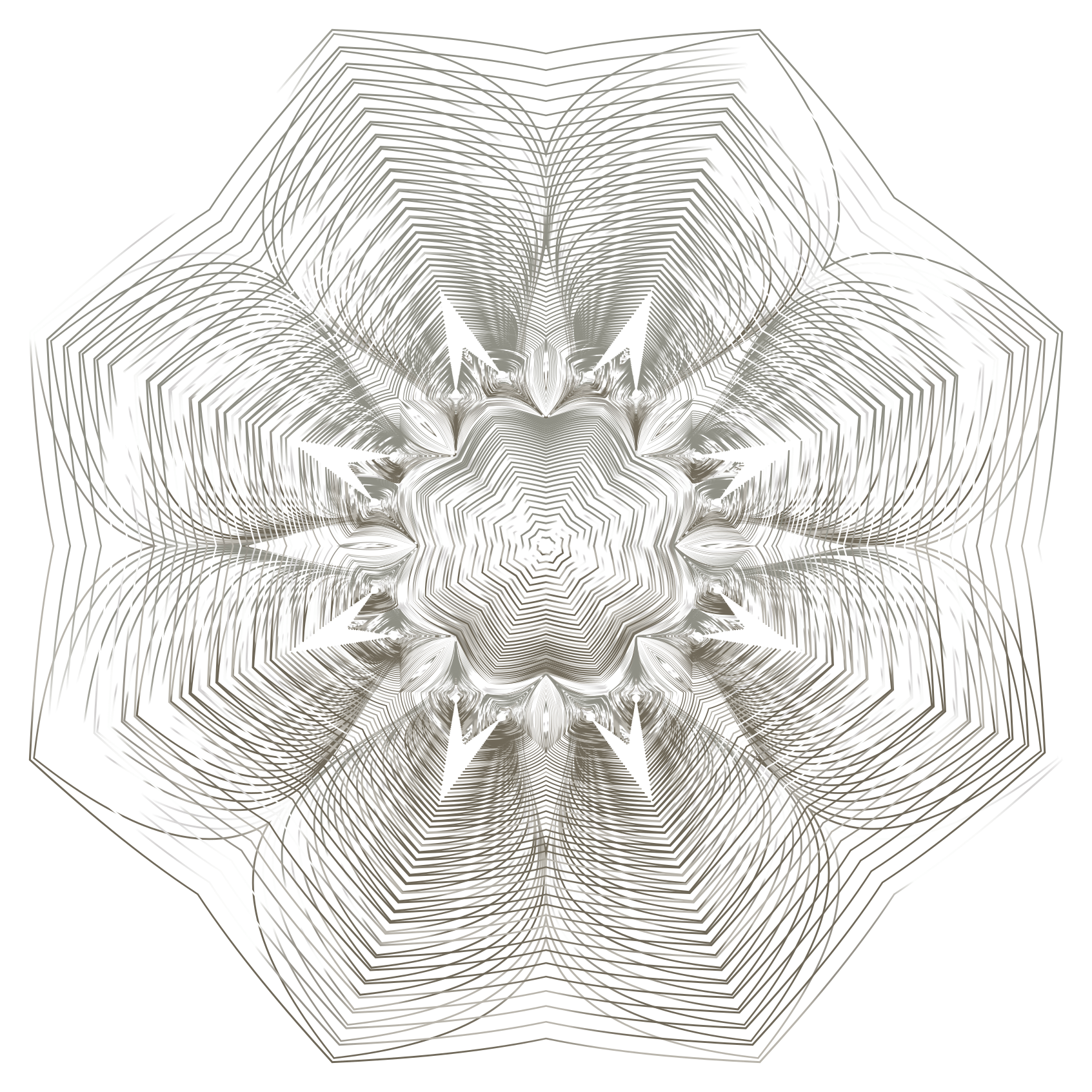This is a close-up of an intricate, geometric design that resembles the center of a flower. It features a mix of black and white lines, creating a visually striking pattern. The design appears to be made up of multiple layers or shapes, giving it a complex and detailed appearance. The overall effect is one of artistic beauty and creativity, showcasing the artist's skill in crafting this unique piece of visual art.