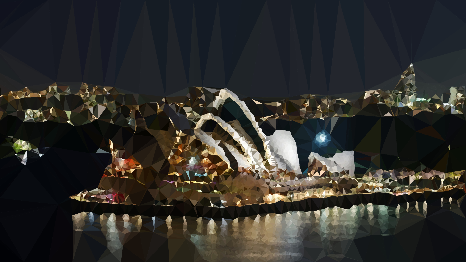 Tags: abstract, art, australia, chromatic, colorful, geometric, landmark, landscape, low poly, night, polygon, prismatic, rainbow, sky, sydney, triangle, triangular, cityscape, light, water, skyscraper
