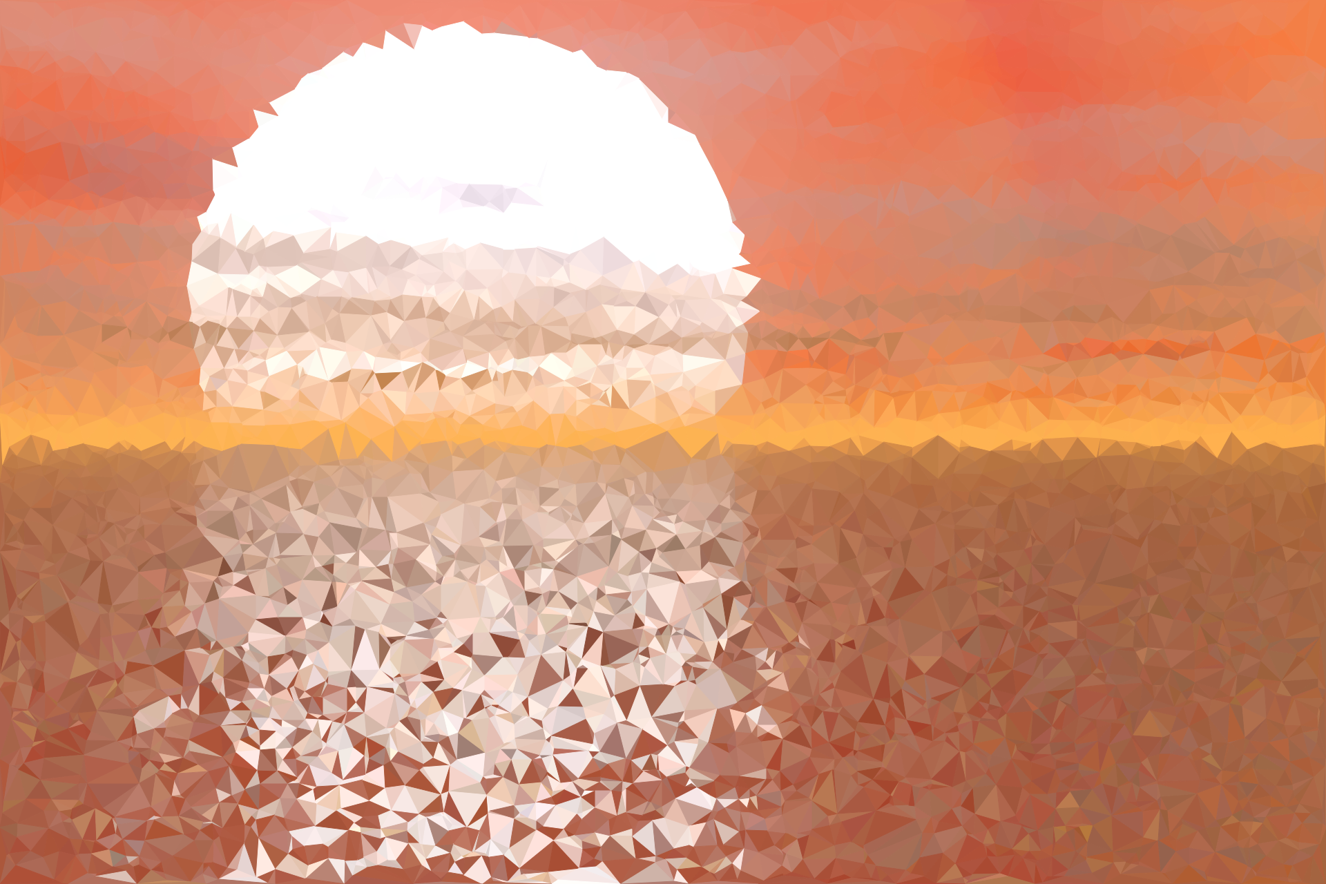 Tags: abstract, art, chromatic, colorful, geometric, landscape, low poly, polygon, prismatic, rainbow, sky, sunset, triangle, triangular, moon, ocean, water, cloud