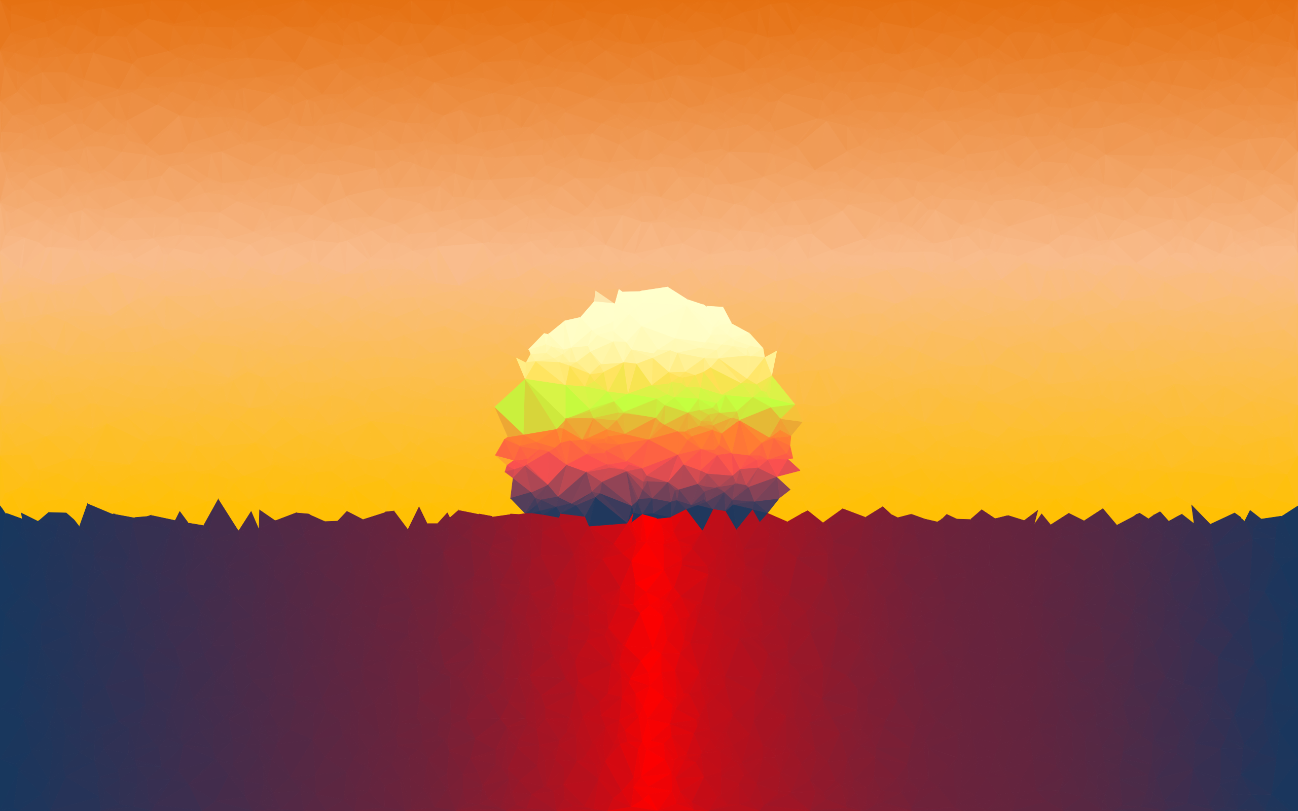 Tags: abstract, art, chromatic, colorful, geometric, landscape, low poly, polygon, prismatic, rainbow, sky, sunset, triangle, triangular, sunrise, orange, red, yellow, blue, cloud, horizon