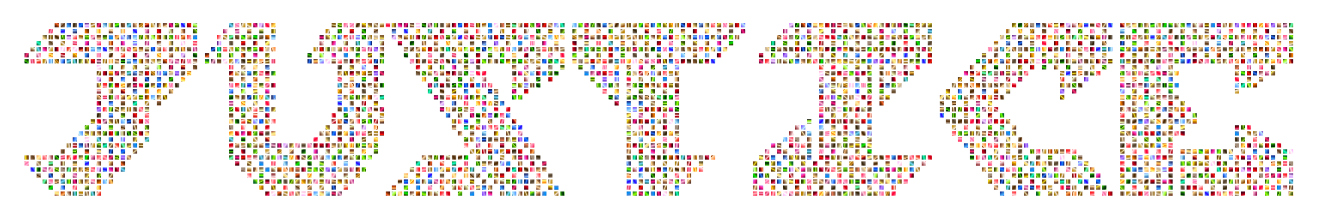 This features a large, abstract design of the word "justice" made up of various shapes and colors. These shapes are scattered across the entirety of the image, creating an interesting visual effect. The arrangement of these shapes gives the impression that they are floating or hovering in the air, adding to the overall artistic quality of the piece. This unique design showcases creativity and a strong focus on the concept of justice.