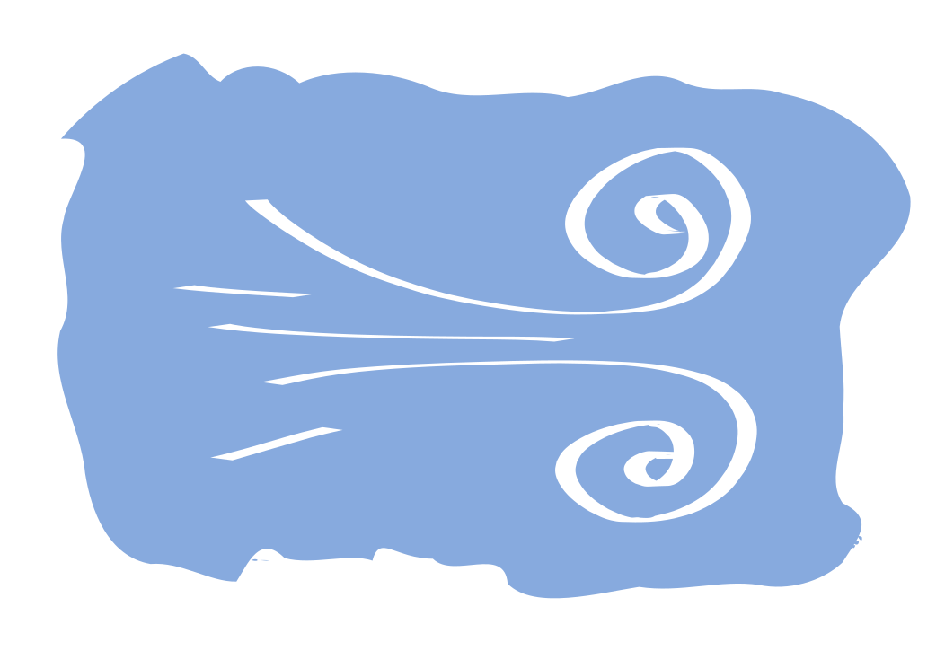 This features a blue background with an artistic design of swirls and waves. In the center, there is a white gust of wind that appears to be blowing towards the viewer. This unique design creates a sense of motion and dynamism in the scene. The combination of the swirling patterns and the depiction of the wind adds visual interest and depth to the image.