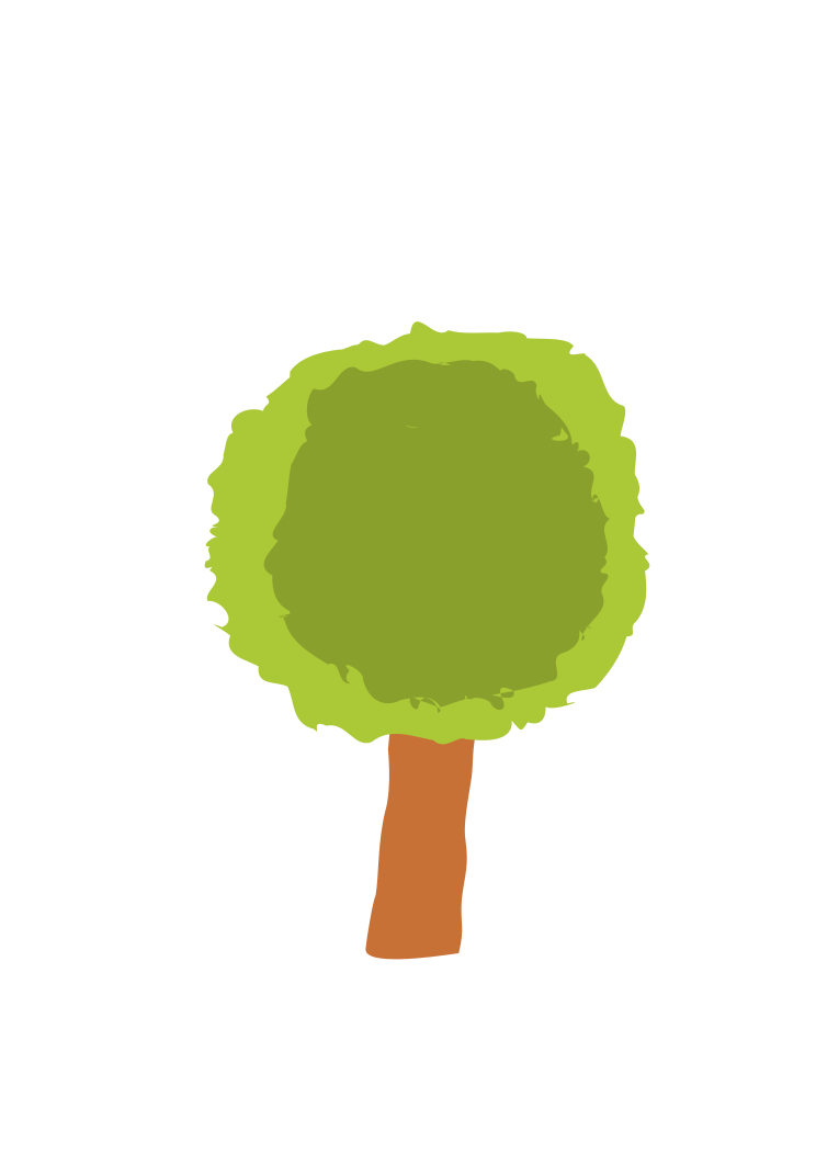 This features a tree drawing with a wide brown stem. It is depicted in a green crown, giving it an overall circular shape. The tree appears to be the main focus of the image, and its unique design makes it stand out against the background.