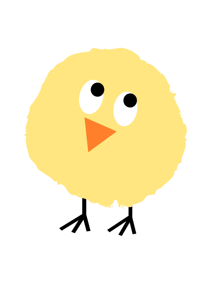 This features a cartoon-like yellow bird with black feet and an orange beak. It appears to be standing on one leg, giving it a unique and playful appearance. The bird's design is simple yet charming, making it an appealing subject for various purposes such as children's artwork or decorative items.