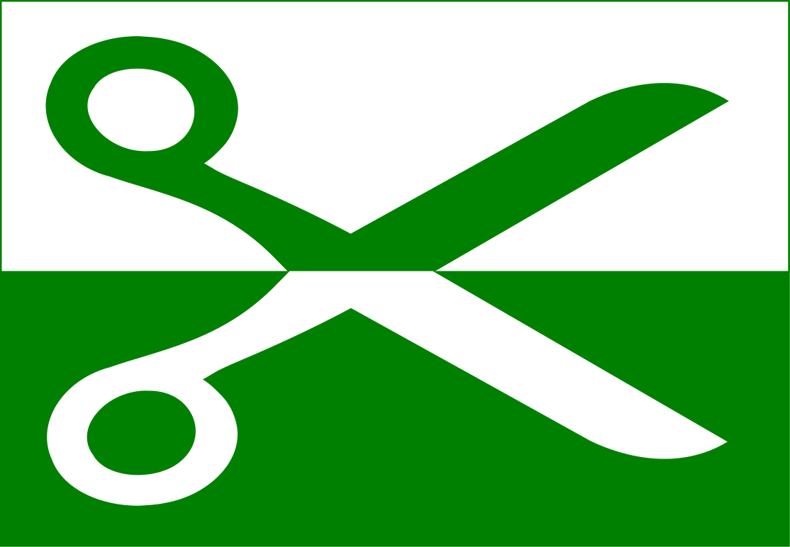 This features a green and white pair of scissors, with the blades prominently displayed. The scissors are positioned in such a way that they appear to be cutting through a piece of paper or fabric. The design is simple yet effective, focusing on the primary elements of the scissors without any additional distractions. This minimalist approach allows viewers to easily recognize and appreciate the form and function of the scissors.