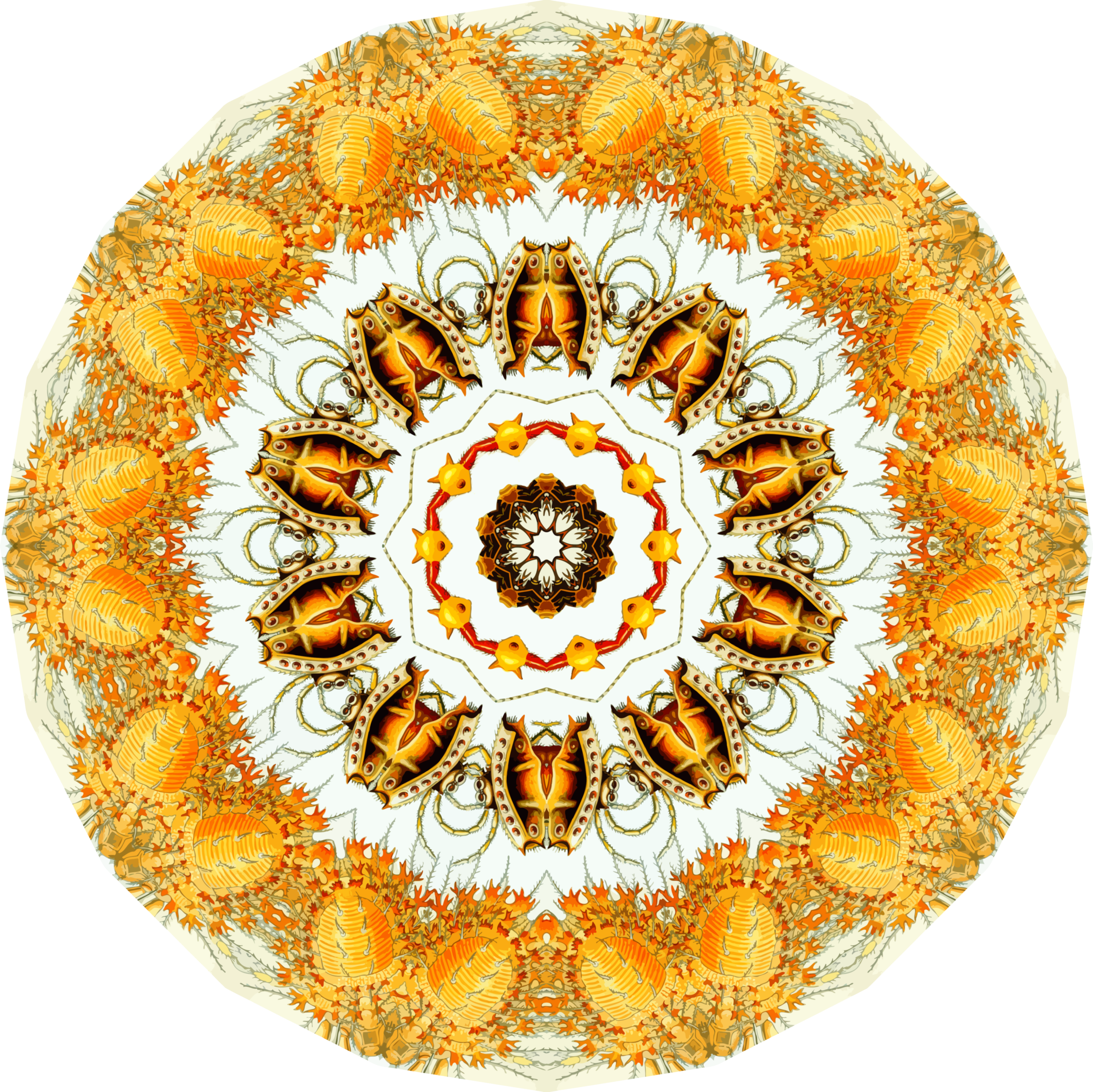 This features a circular design with an intricate pattern of insects, likely spiders or beetles. These insects are arranged in various positions around the circle, creating a visually appealing and detailed composition. The design appears to have been created using a combination of drawing elements and digital tools, such as Paint.net and Vector Magic. This unique artwork showcases the artist's skill in combining traditional techniques with modern technology to create an eye-catching piece that captures the viewer's attention.