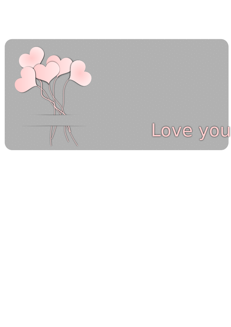 This features a Valentine's day gift card with a heart-shaped flower design. There are five flowers in total, each one varying slightly in size and positioned at different angles. The flowers are arranged on the left side of the card, while the text "LOVE YOU" is displayed prominently in pink letters on the right side. The card has a gray background that complements the colorful flower design.