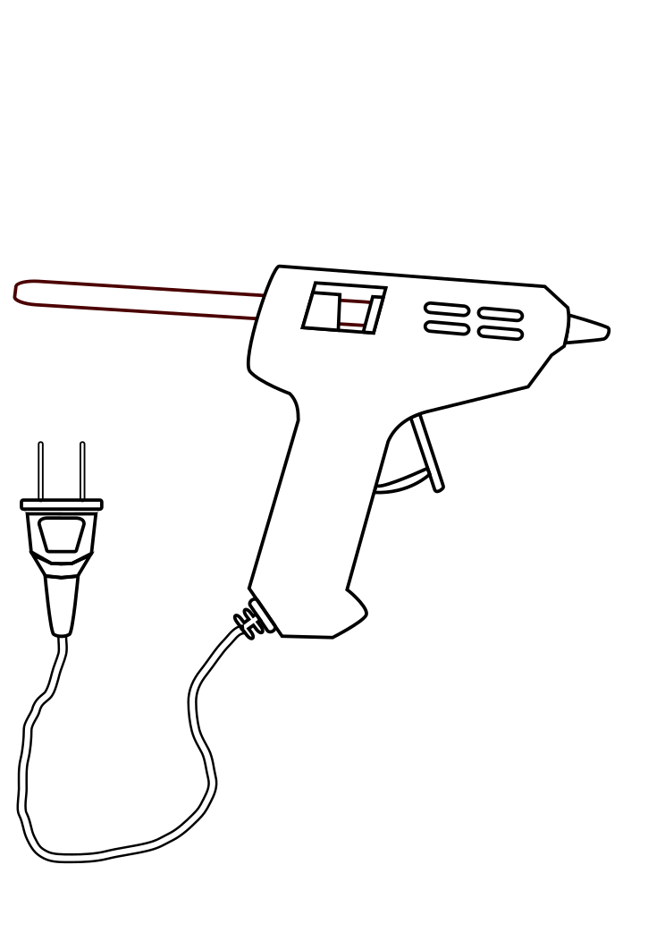 This features a white hot glue gun with a cord and plug attached to the bottom of it. The glue gun is designed for easy use, making it an ideal tool for various crafting projects. It has a red handle that adds a touch of color to the otherwise white design. The illustration captures the essence of this versatile tool, showcasing its practicality and ease of use in different situations.