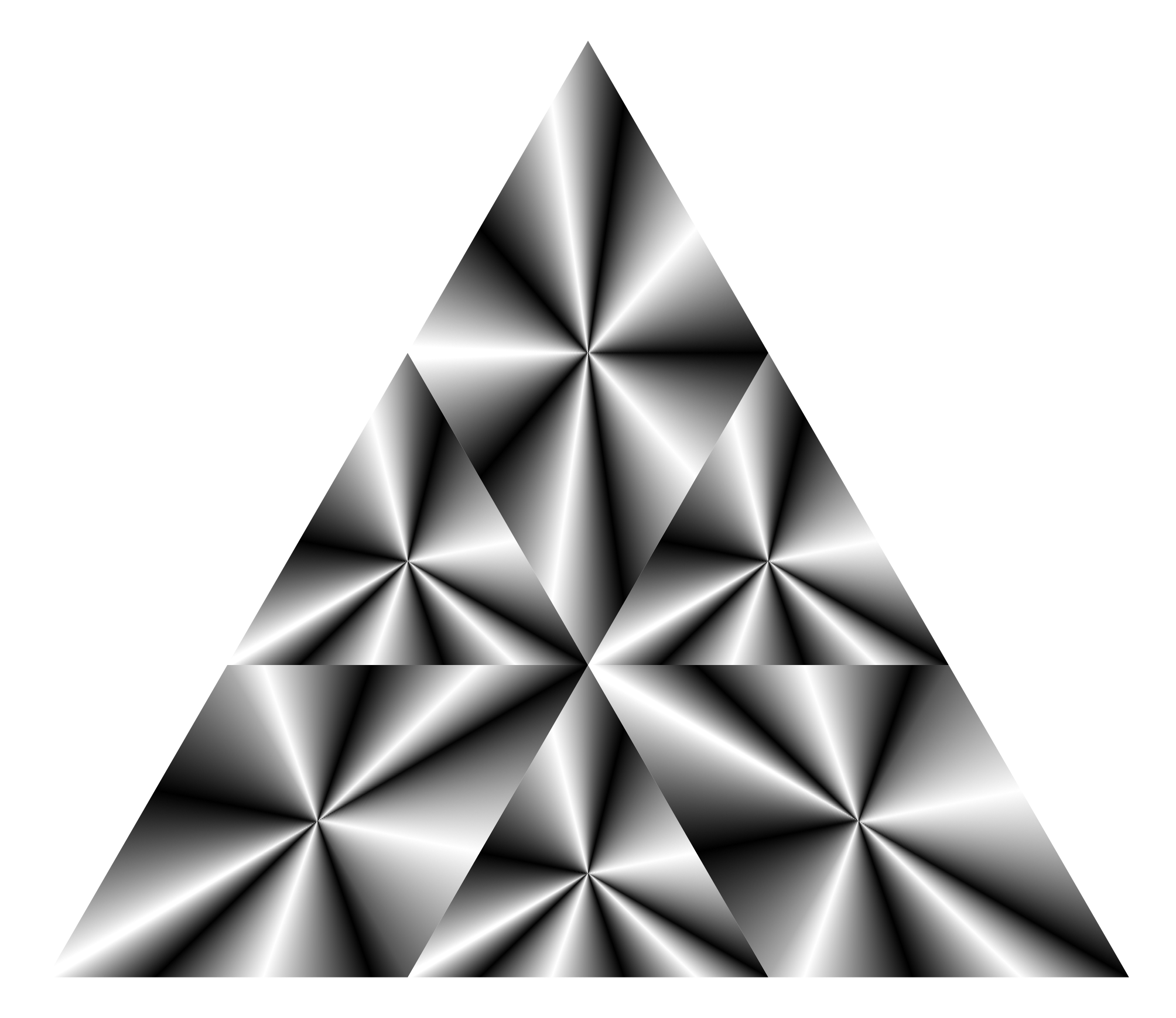 This features a large, three-dimensional triangle made up of smaller triangles. These smaller triangles are arranged in such a way that they create an intricate and visually appealing pattern. The overall design is reminiscent of a honeycomb or a series of stacked geometric shapes. The color scheme of the image is predominantly gray, giving it a sleek and modern appearance. This artistic piece could be used as a decorative element in various settings, such as homes, offices, or public spaces, to add visual interest and sophistication.