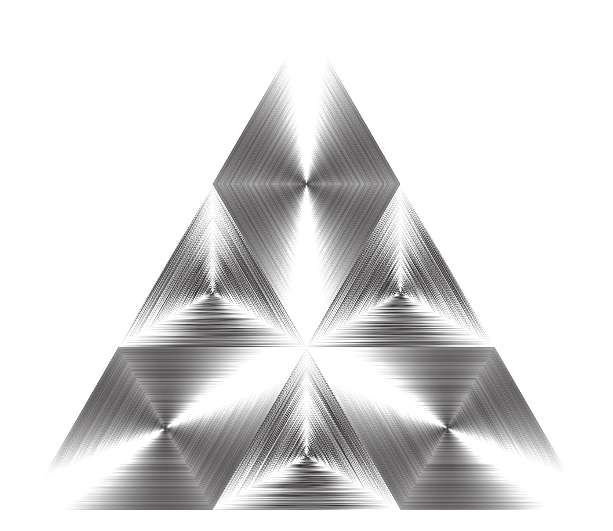 This features a three-dimensional triangle shape made up of silver lines. It appears to be an artistic representation, possibly in the form of a drawing or painting. The triangle is composed of multiple layers and angles, giving it a complex and intricate appearance. The silver lines create a sense of depth and dimension within the triangle, making it visually striking. Overall, the image showcases a unique and creative interpretation of a simple geometric shape.