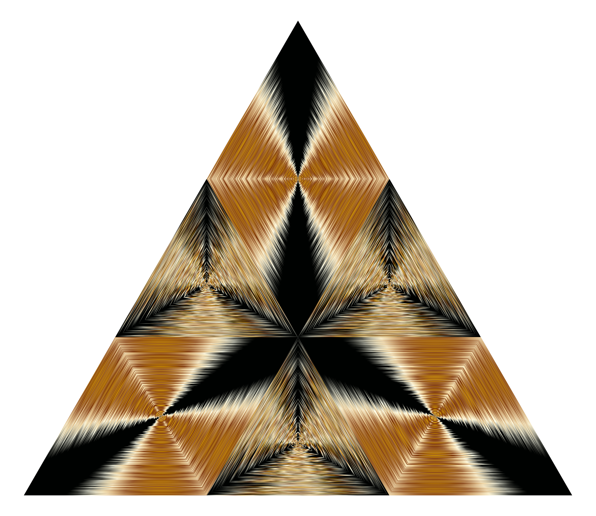 This features a large, intricate triangle made up of smaller triangles. Each small triangle is connected to the larger one and creates an interesting pattern. The colors used in this design are predominantly brown and black, giving it a warm and sophisticated appearance. The overall structure of the triangle is complex, with many interconnected lines that create a visually captivating piece of art.