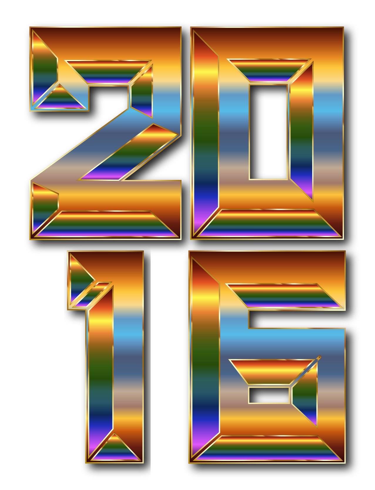 Tags: 2016, abstract, art, calendar, chromatic, colorful, geometric, gold, metallic, new, number, numeral, prismatic, rainbow, shiny, text, time, type, typography, word, year