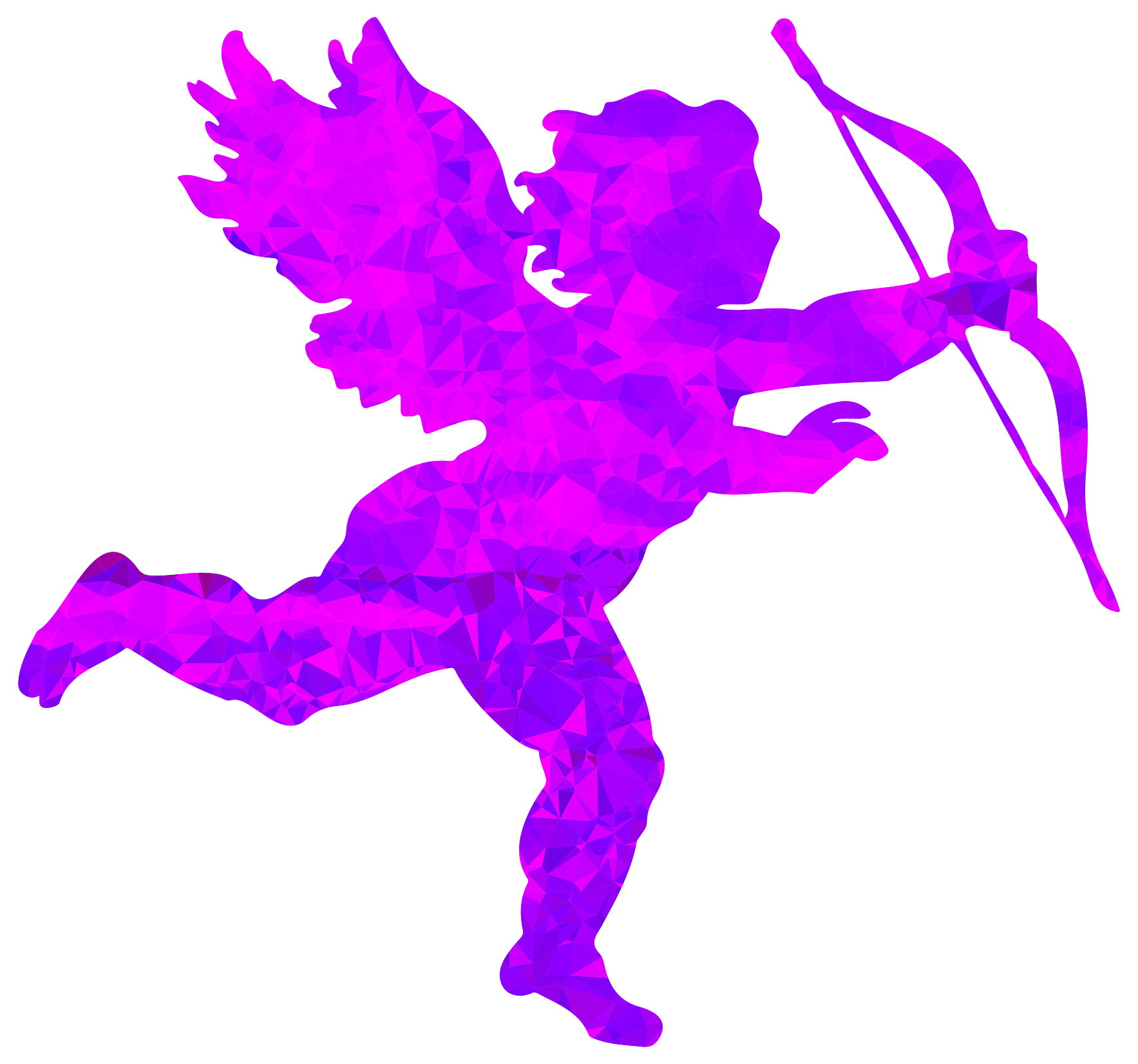 This features a purple angel or cupid figure, which is holding a bow and arrow. The angel appears to be in motion, as if flying through the air. The color of the angel's wings is also purple, adding to its ethereal appearance. This unique design creates an interesting visual effect that captures the viewer's attention.