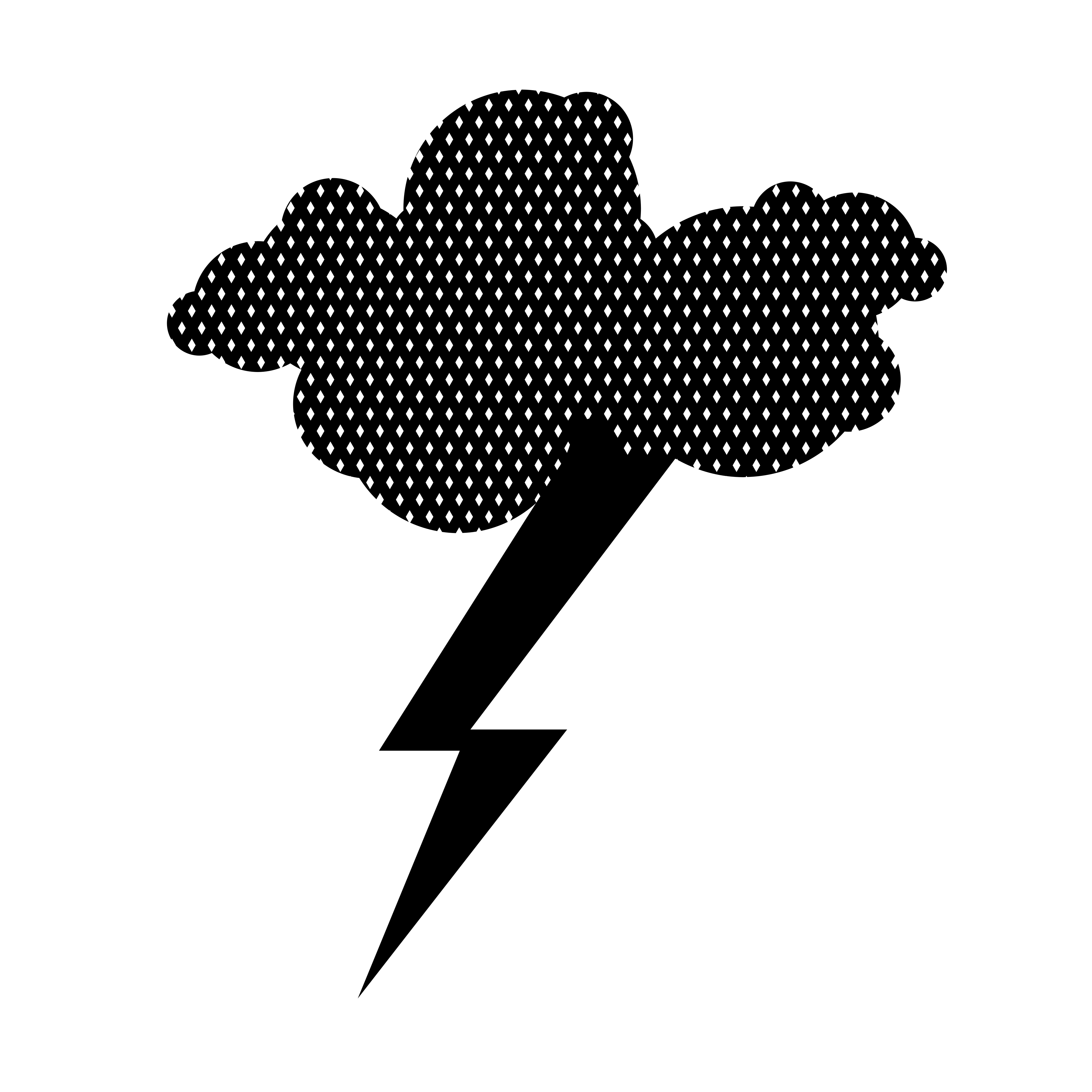 This features a cloud with a lightning bolt coming out of it. The cloud is black and white, with small dots on the background. This creates an interesting contrast between the dark cloud and the white dots. The lightning bolt itself appears to be made up of smaller lines, adding depth and detail to the overall design. The image captures a moment where the lightning bolt seems to be emerging from the cloud, creating a sense of movement and energy in the scene.