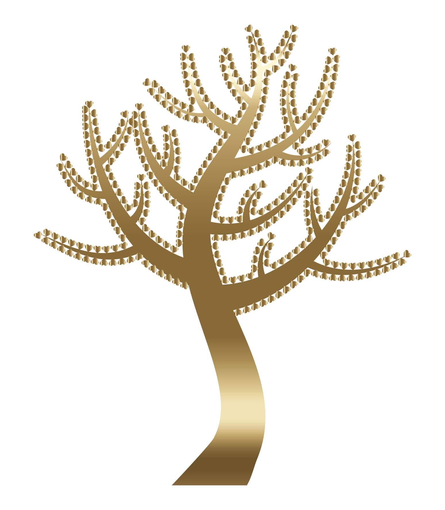This features a tree with golden leaves, giving it an elegant and sophisticated appearance. Instead of traditional green leaves, the tree has hearts as its decorative elements, adding a unique touch to the design. The tree is depicted in a silhouette style, emphasizing its shape and structure against a white background. This artistic representation of the tree creates a visually appealing image that captures the viewer's attention.