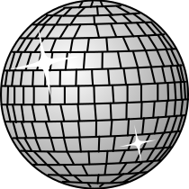 This features a large, round disco ball with a silver and black color scheme. It has a shiny effect that makes it appear to be reflecting light. The ball is the main focus of the image, occupying most of the frame.