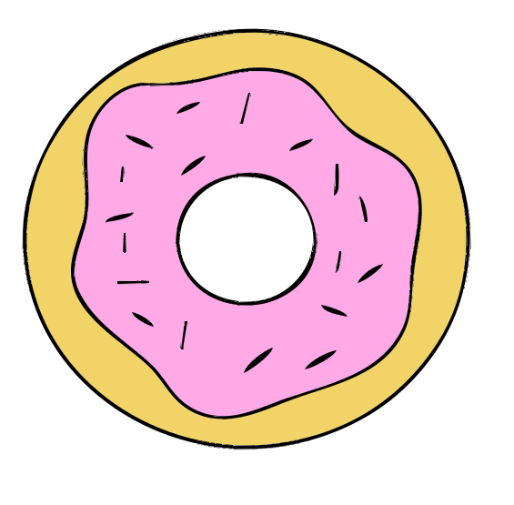This features a large, round pink donut with a hole in the center. It is placed on top of a yellow background, which adds contrast to the scene. The donut appears to be made from frosting and has a slightly blurred appearance, giving it a hand-drawn look. This artistic representation of a donut creates an interesting visual effect that captures the viewer's attention.