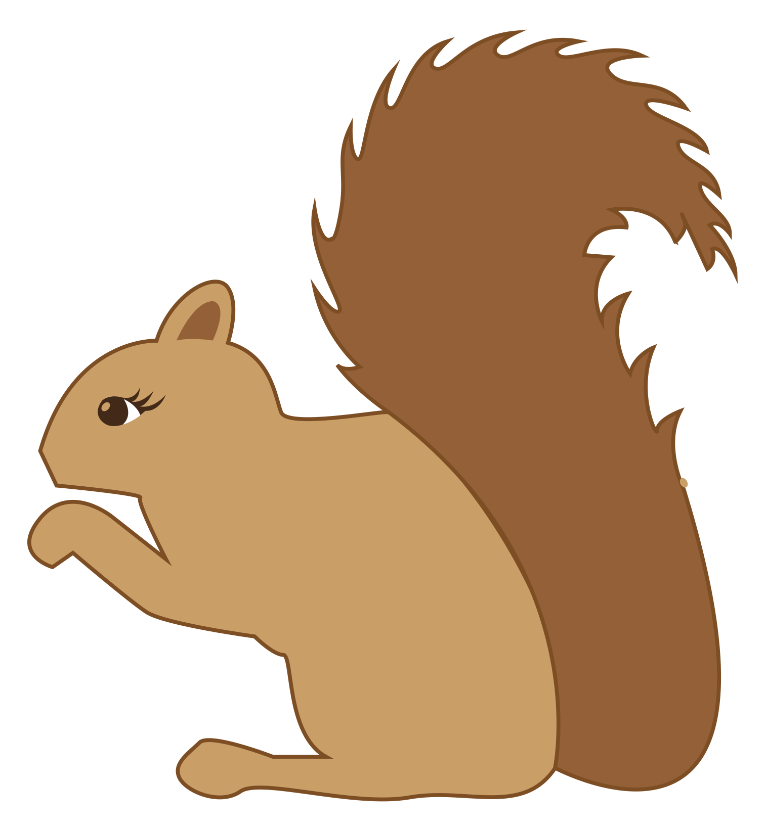 This features a brown squirrel with a big tail, sitting on the ground. It appears to be looking at something in front of it, possibly an object or another animal. The squirrel's fur is well-defined and its tail stands out prominently, adding to its overall appearance. This illustration captures the essence of a typical squirrel scene, with the animal comfortably resting on the ground while maintaining awareness of its surroundings.