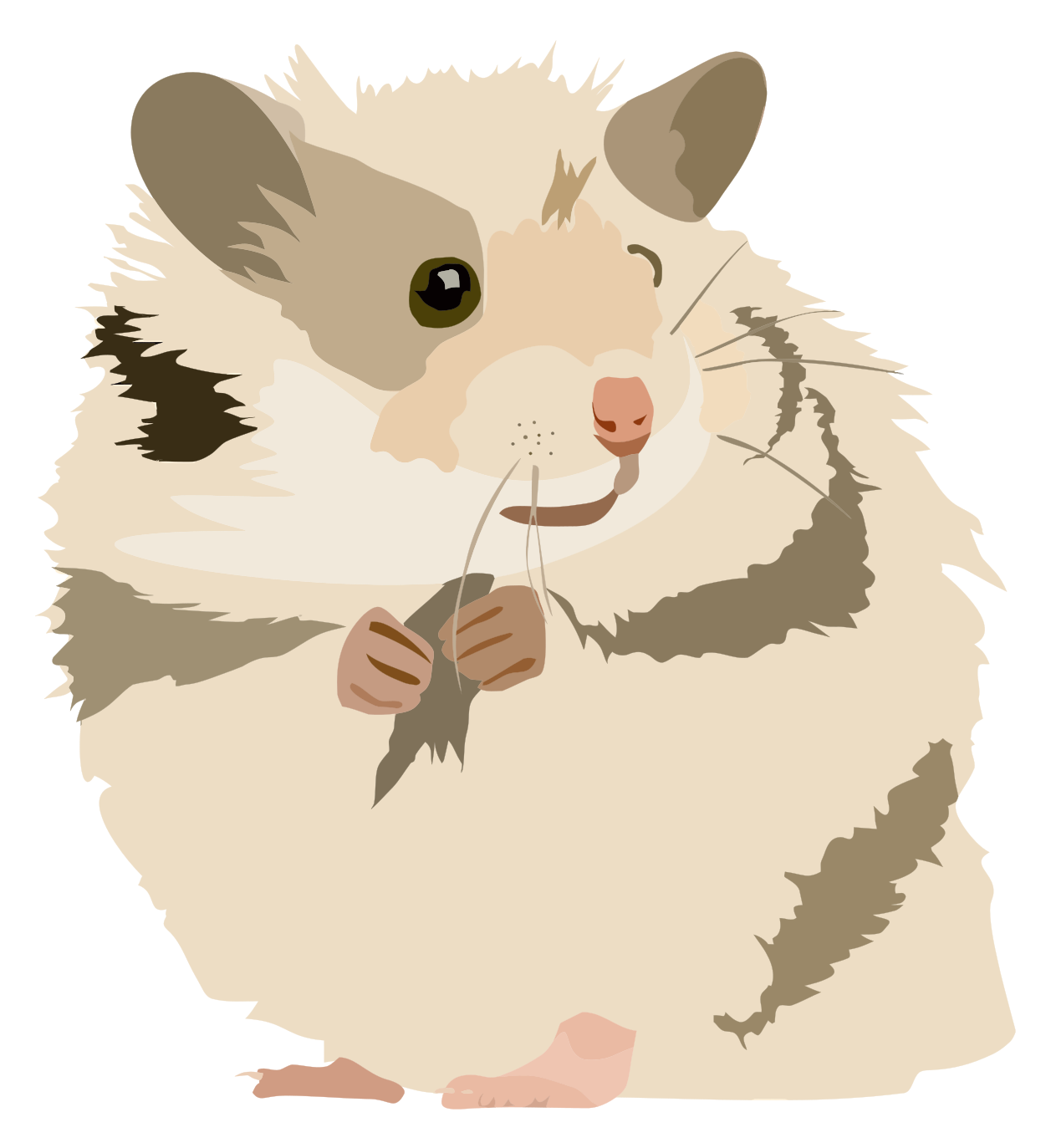 This features a cute illustration of a light tan hamster with brown patches on its body. It is holding something in its hands, possibly a toy or an object it has found interesting. The hamster appears to be looking towards the right, as if observing something that caught its attention. The overall scene gives off a sense of curiosity and playfulness, as the hamster seems engaged with its surroundings.