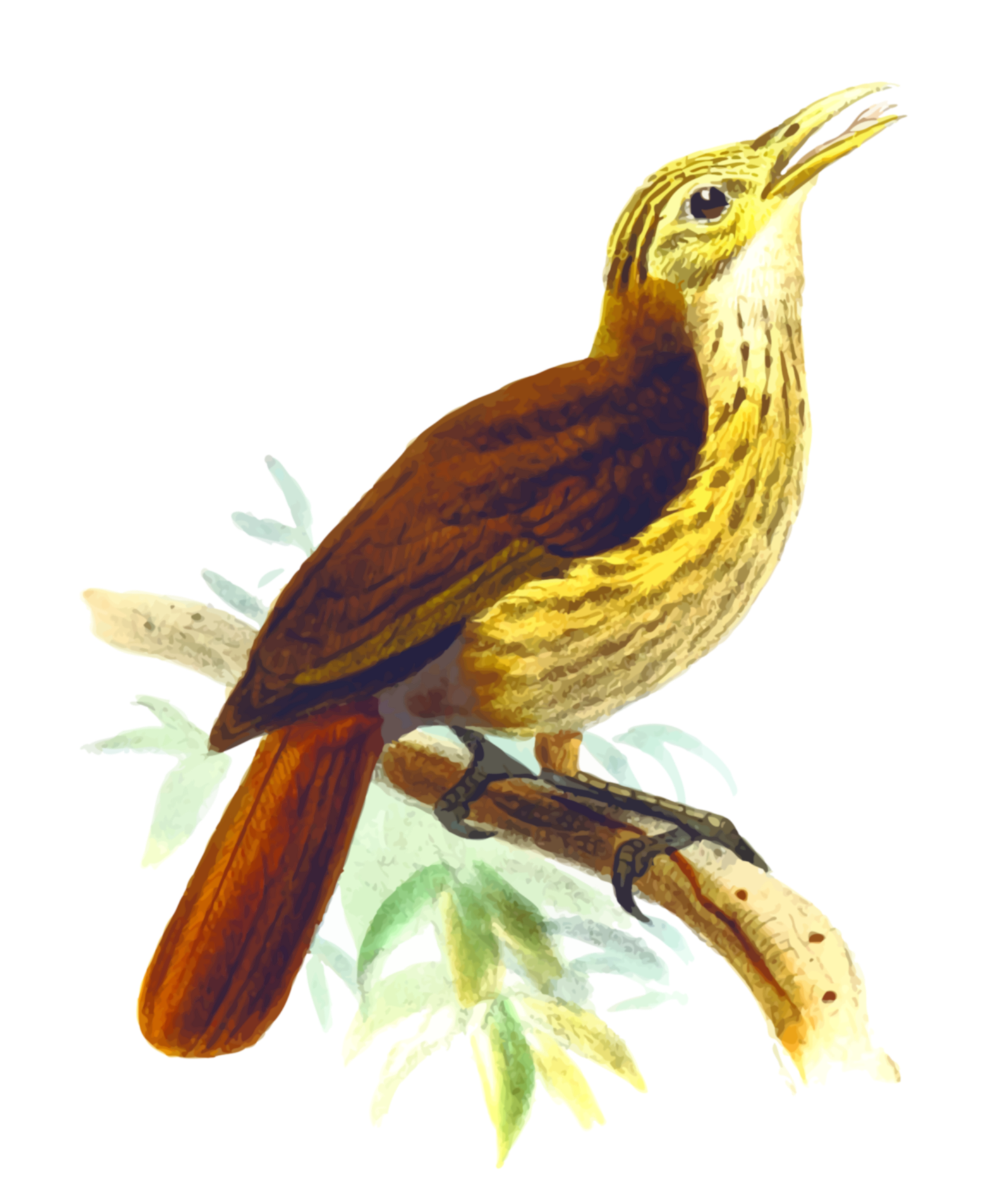 This features a beautifully drawn bird perched on a branch. The bird is brown and yellow in color, with its back being brown and its stomach and head being yellow. It appears to be facing the right side of the image as it stands on the branch. The drawing captures the intricate details of the bird's feathers and features, making it an impressive piece of artwork.